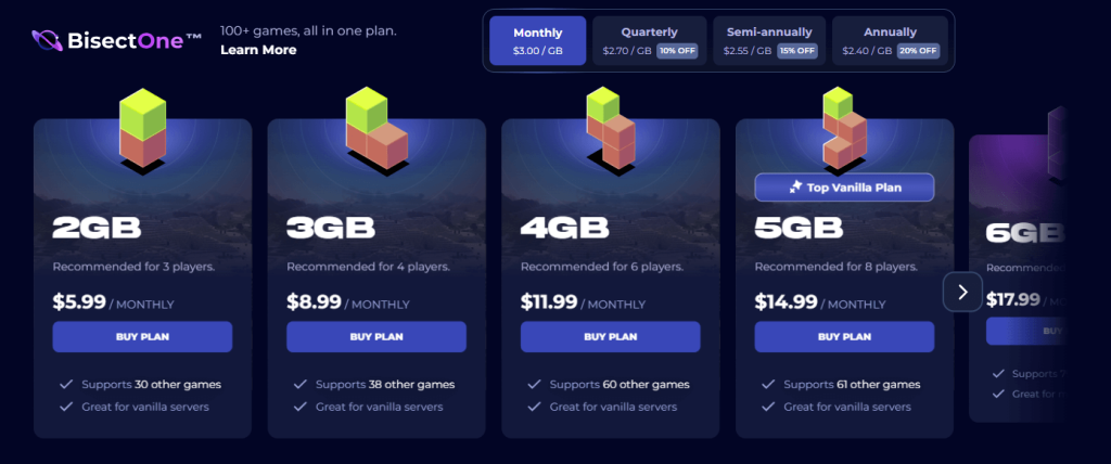 One thing I want to clarify because many articles get this wrong is that BisectHosting does not use one fixed price for all games.