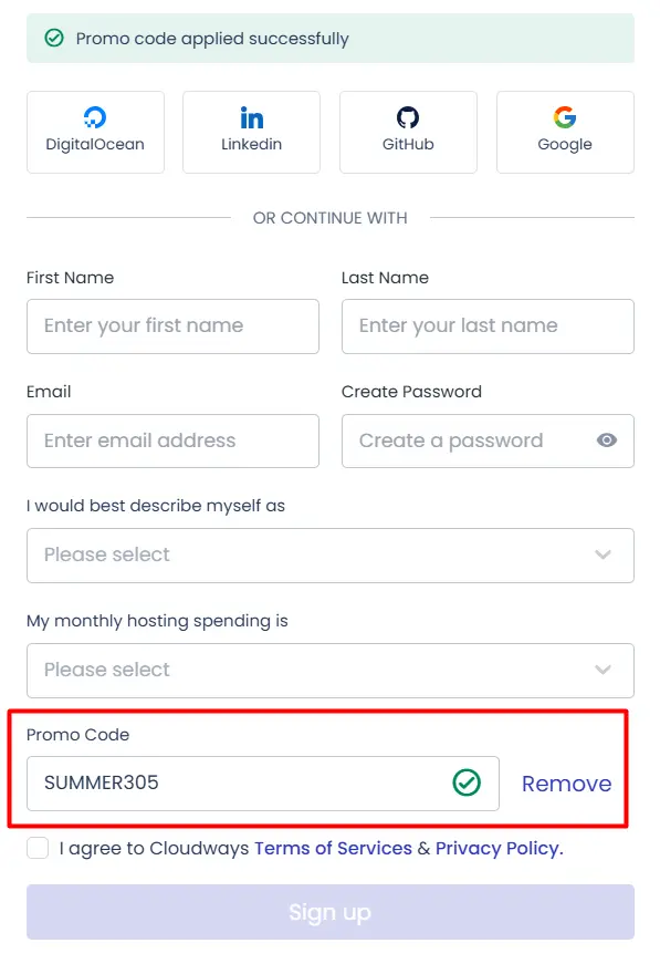 Our website provides Cloudways promo codes so you can save money when starting or renewing your hosting. Using a promo code is simple and only takes a few steps. Below, we explain how to apply a Cloudways promo code, what to do if it doesn’t work, and also share some Cloudways alternatives in case you want to compare.