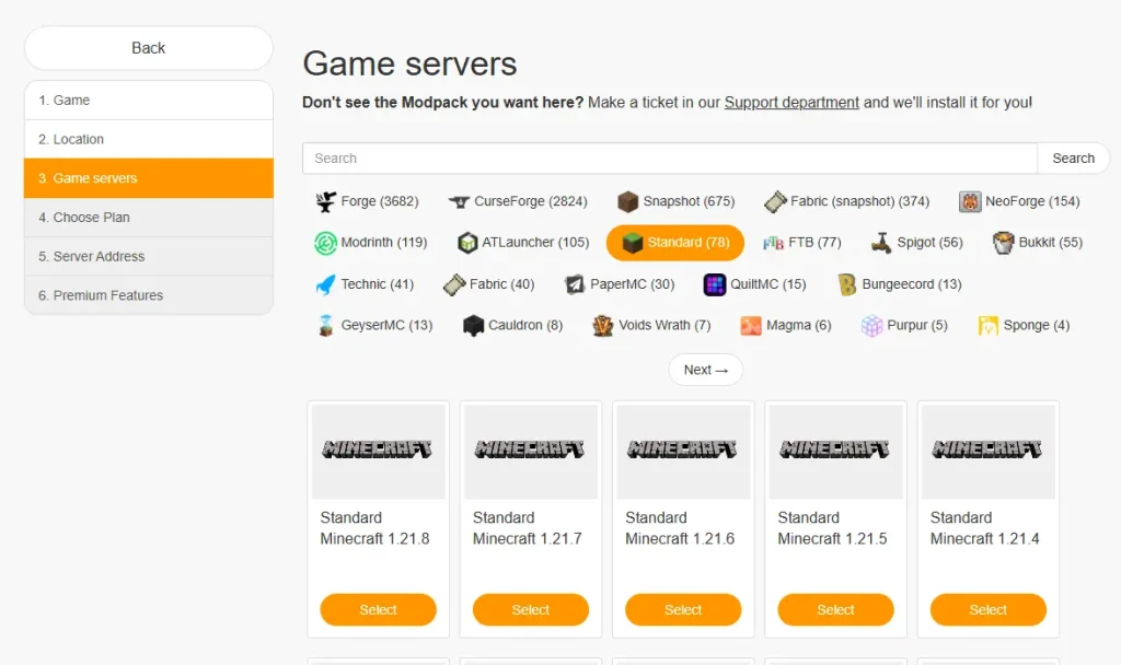Pick the game you want to set up your server for.