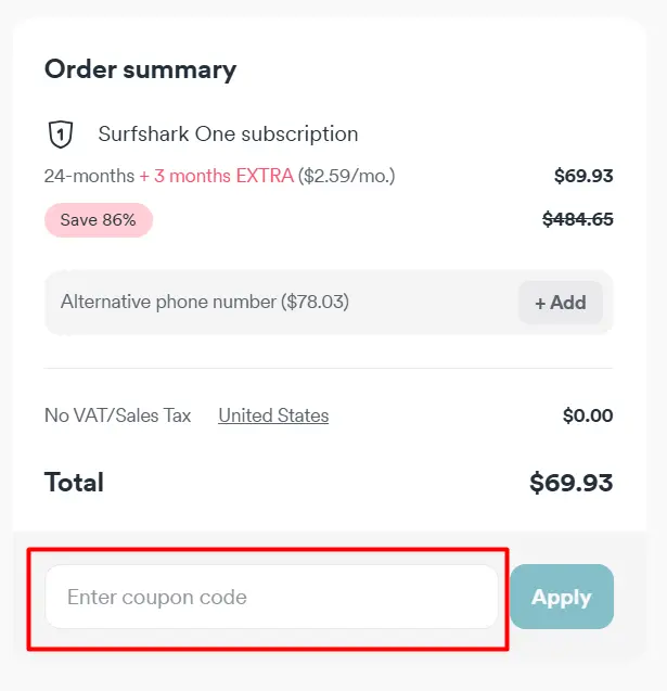 A Surfshark coupon code is a special word or letters you enter during checkout to get a lower price.